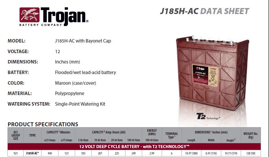 Trojan J185H-AC Deep Cycle Battery Free Delivery most locations in the lower 48*.