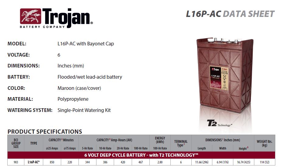Trojan L16P-AC 420 AH Deep Cycle Battery